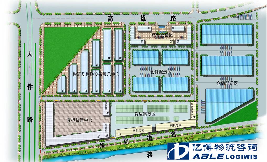 本项目以现代物流运作设施为载体,以高效快捷的物流信息传递、金融与物流无缝衔接等现代物流运作理念为支撑,集运输、保管、包装、装卸搬运、流通加工、配送、采购、信息咨询、物流金融、辅助功能为一体的现代化物流园区,打造“一园区五功能区四平台”的总体架构,服务范围全面覆盖广汉市(特别是广汉经济开发区)。
